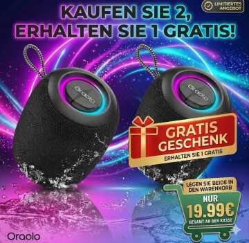 Legen Sie zwei der unten abgebildeten Bluetooth-Lautsprecher in den Warenkorb – zum Preis von nur 19,99 Euro an der Kasse! Das Angebot gilt für die ersten 30 Kunden!