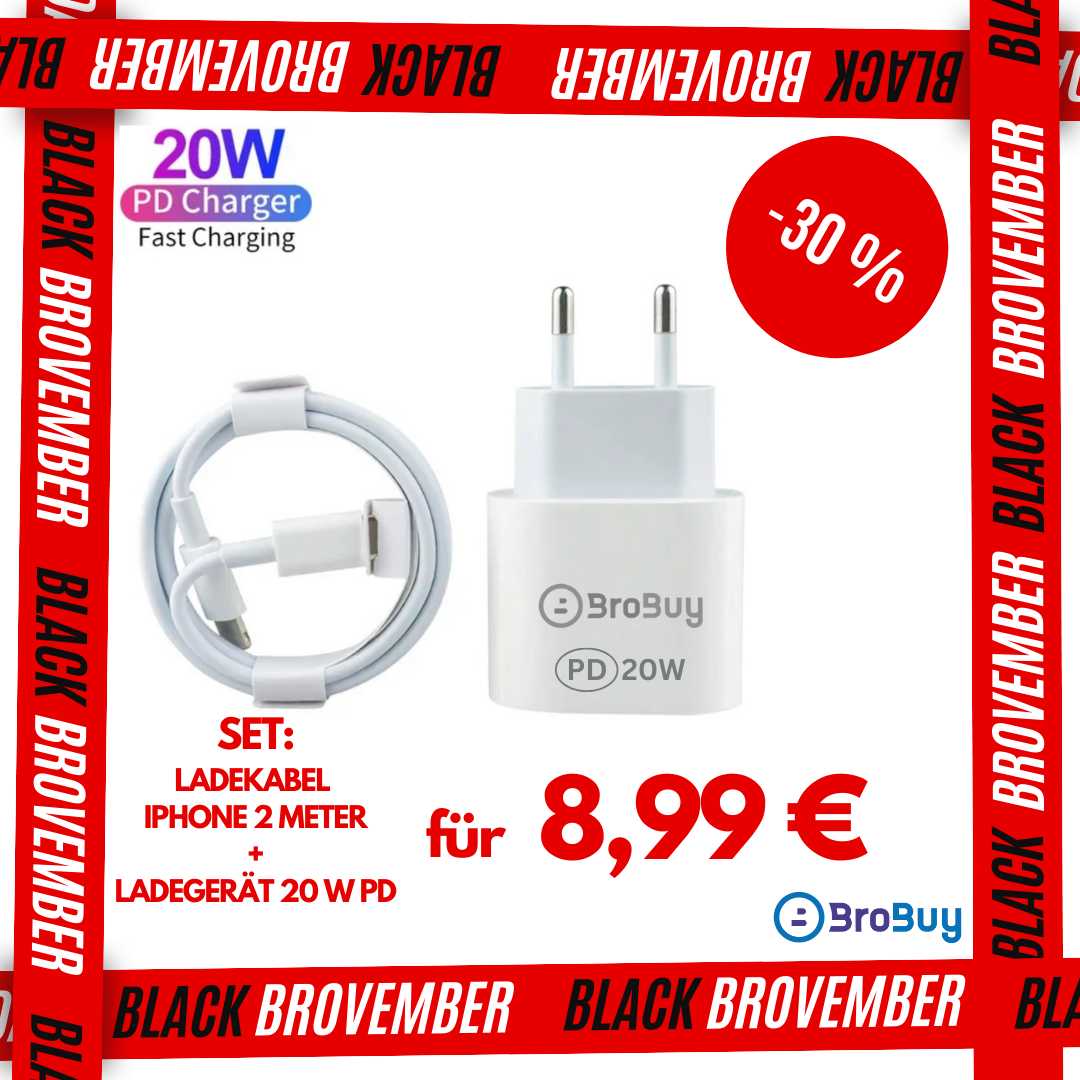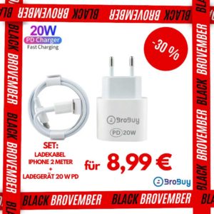 Bei EBay verkauft der Verkäufer BroBuy gerade ein Set mit einem 20W PD Ladegerät und einem Ladekabel für iPhone (Lightning Anschluß).