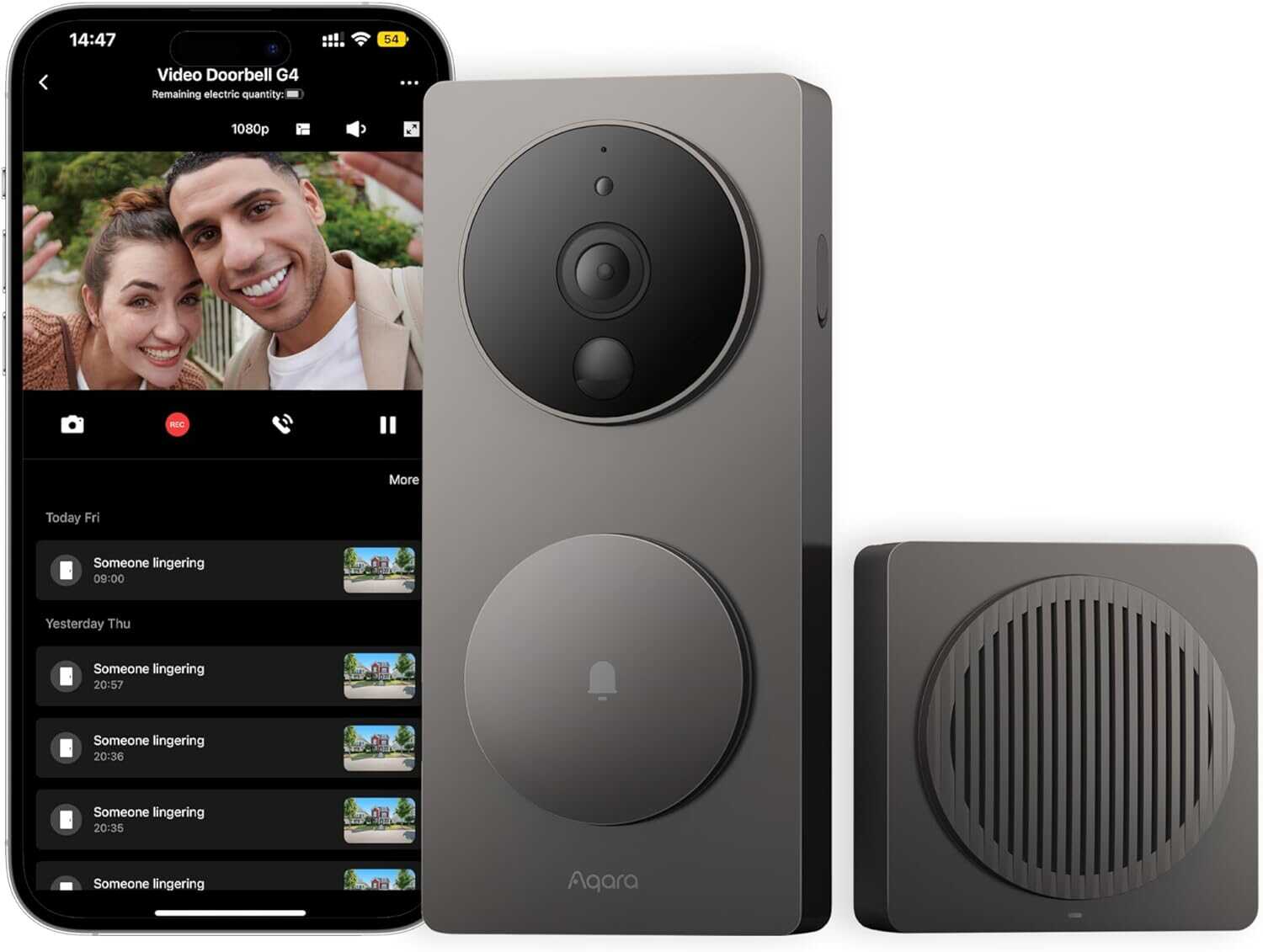 - [Klingel-Repeater Inklusive und WPA3 unterstützt] Dank des mitgelieferten Klingel-Repeaters mit einem lauten 95-dB-Lautsprecher kann die türkamera G4 zusammen mit den Aqara-Hubs nicht nur aufzeichnen, was auf Ihrer Veranda passiert, sondern auch eine laute Sirene ertönen lassen, die bei Einbruch, Erschütterung, Wasseraustritt oder anderen Ereignissen Alarm schlägt. Außerdem wird der neueste Wi-Fi-Sicherheitsstandard WPA3 unterstützt, um Ihre Daten noch besser zu schützen.