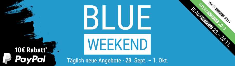 *Aktionsbedingungen Blue Weekend: Preise gelten vom 28. September bis 1. Oktober 2018. Preisangaben in Euro inkl. gesetzlicher Mehrwertsteuer. Streichpreise beziehen sich auf die unverbindliche Preisempfehlung (UVP). Irrtümer, Satz- / Schreibfehler vorbehalten. Die Abgabe erfolgt nur an private Haushalte und nur in haushaltsüblichen Mengen (max. 3 Stück) bzw. solange der Vorrat reicht.