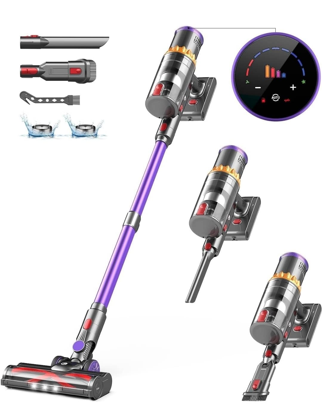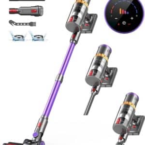 - 【550W bürstenloser Motor und 45Kpa starke Saugleistung】Akku Staubsauger verfügt über einen fortschrittlichen bürstenlosen 550W-Motor, der eine beispiellose Saugleistung von 45Kpa liefert und mühelos Staub, Tierhaare, große Krümel und tiefen Schmutz von Teppichen, Hartholzböden und Fliesen aufnimmt und so eine wirklich gründliche Reinigung ermöglicht