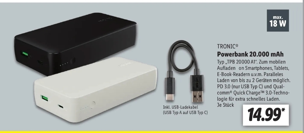 bei Lidl vor Ort gibts grad eine 20.000er Powerbank für 14,99€