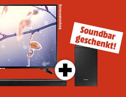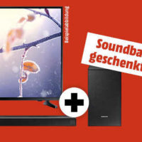 Bei Media Markt gibt es noch eine coole Aktion, für alle die einen neuen TV inkl. Soundbar suchen. Und zwar bekommt ihr zu ausgewählten Samsung TVs die Samsung HW-N400 Soundbar im Wert von 172€ gratis dazu. Sucht euch dazu einfach einen TV von Aktionsseite aus, legt ihn und die Soundbar in den Warenkorb und gebt den Code „SAMSUNG-COUP“ ein.