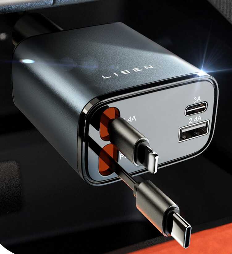 - Einziehbares Design: Zigarettenanzünder-USB C – Schluss mit Kabelchaos! Das automatisch einziehbare USB C und für iPhone Kabel zieht sich nach Gebrauch automatisch zurück. So bleibt Ihr Auto immer aufgeräumt, und die Kabel sind vor Verschleiß geschützt – kein Kabelsalat, nur volle Leistung.