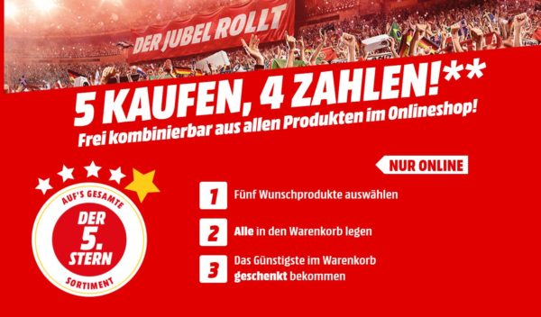 MediaMarkt: 5 Artikel kaufen, nur 4 bezahlen – gilt für das komplette (!) Sortiment