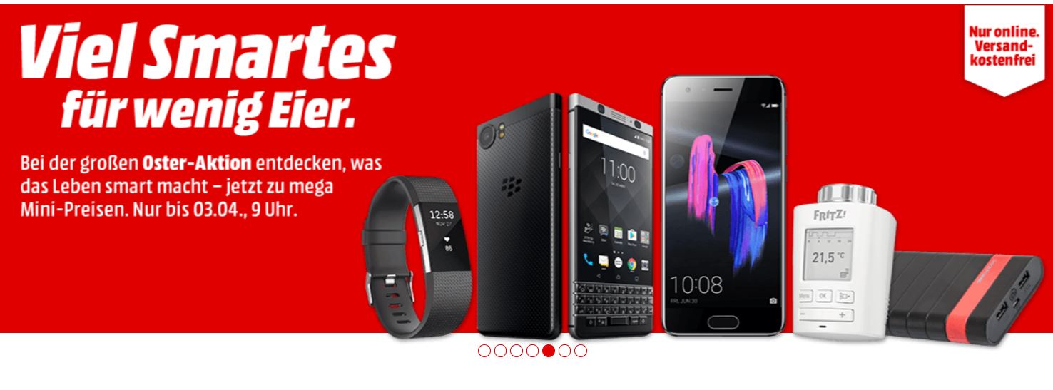 Unter dem Motto “viel Smartes für wenig Eier” läuft bei MediaMarkt bis Dienstag 9 Uhr eine neue Aktion.