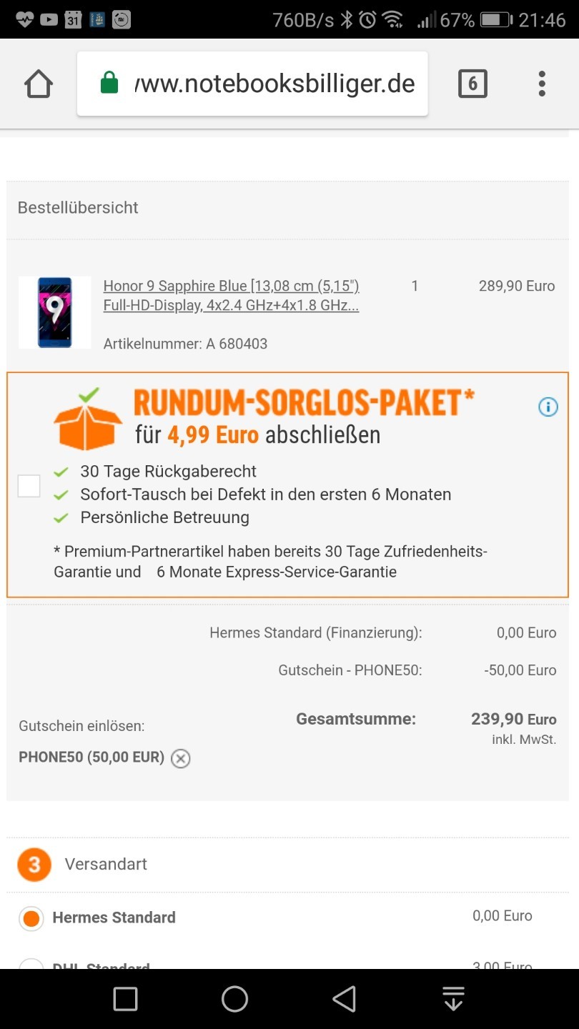 stanistas 01.04.2018, 21:48Das Honor 9 gibt's bei notebooksbilliger.de für 289€, und wenn man es zinsfrei finanzieren lässt, gibt's immer einen Rabatt in H.v. 50 €
