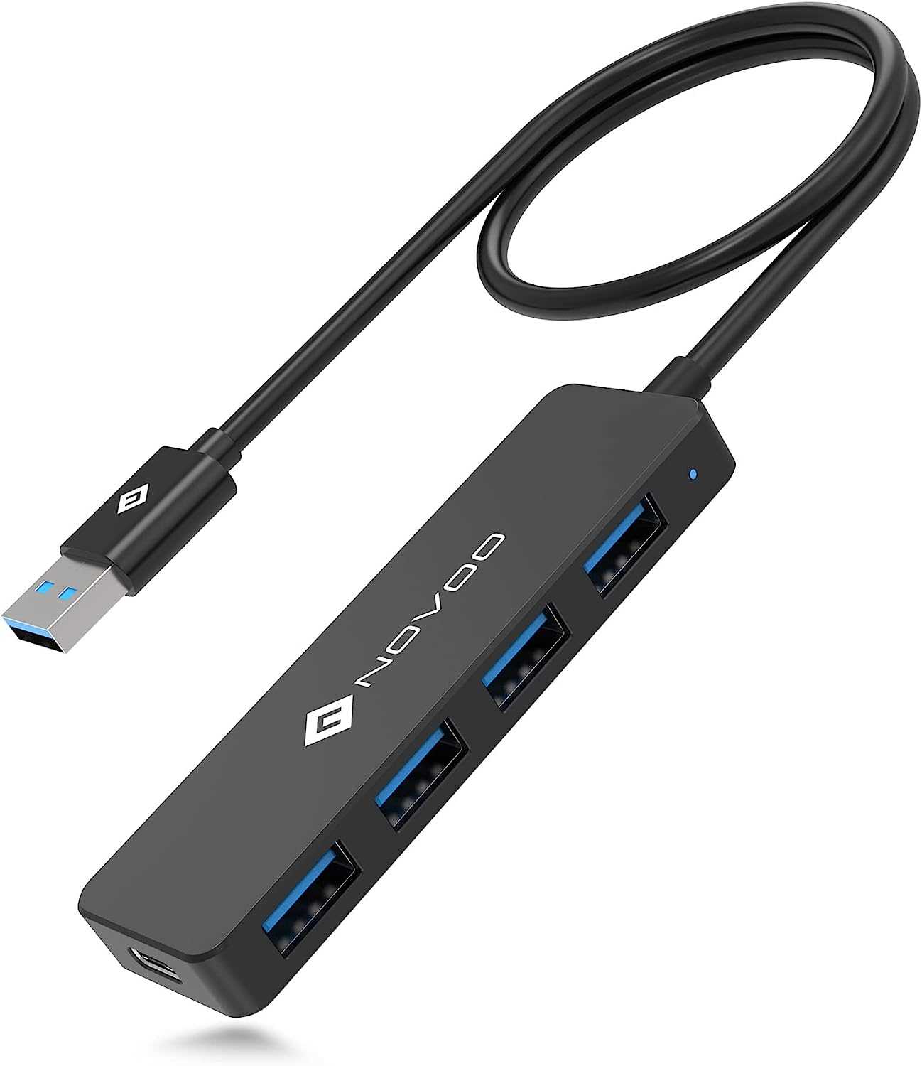 - Blitzschnelle Datenübertragung: Genießen Sie die Hochgeschwindigkeits-Datenübertragungsfunktionen des NOVOO R5 Lite USB-Hubs von bis zu USB 3.0 mit 5 Gbit/s, 10-mal schneller als USB 2.0, und übertragen Sie große Dateien in Sekundenschnelle. Dieser USB-Hub eignet sich perfekt für die schnelle und effiziente Übertragung von Filmen, Fotos und Dateien.