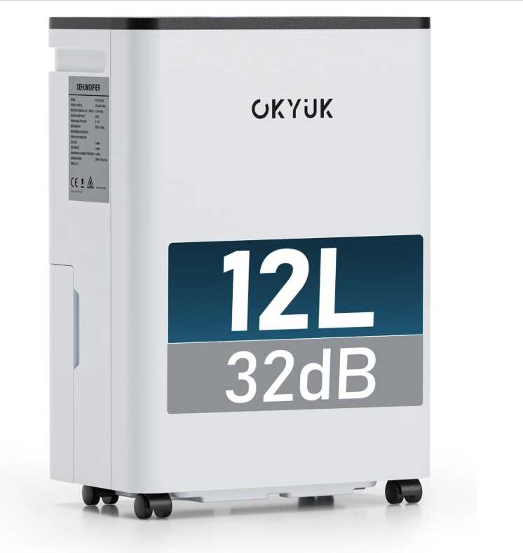 OKYUK elektrischer Luftentfeuchter – 12L mit Digitaler Luftfeuchtigkeitsanzeige