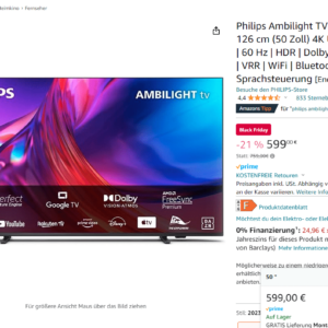Der Philips Ambilight TV | 43PUS8508/12 ist im Angebot, bis zu 21 % durch Black Friday. Ich selbst hab den 43 Zoll in bin sehr zufrieden mit. Zuschlagen lohnt sich also !