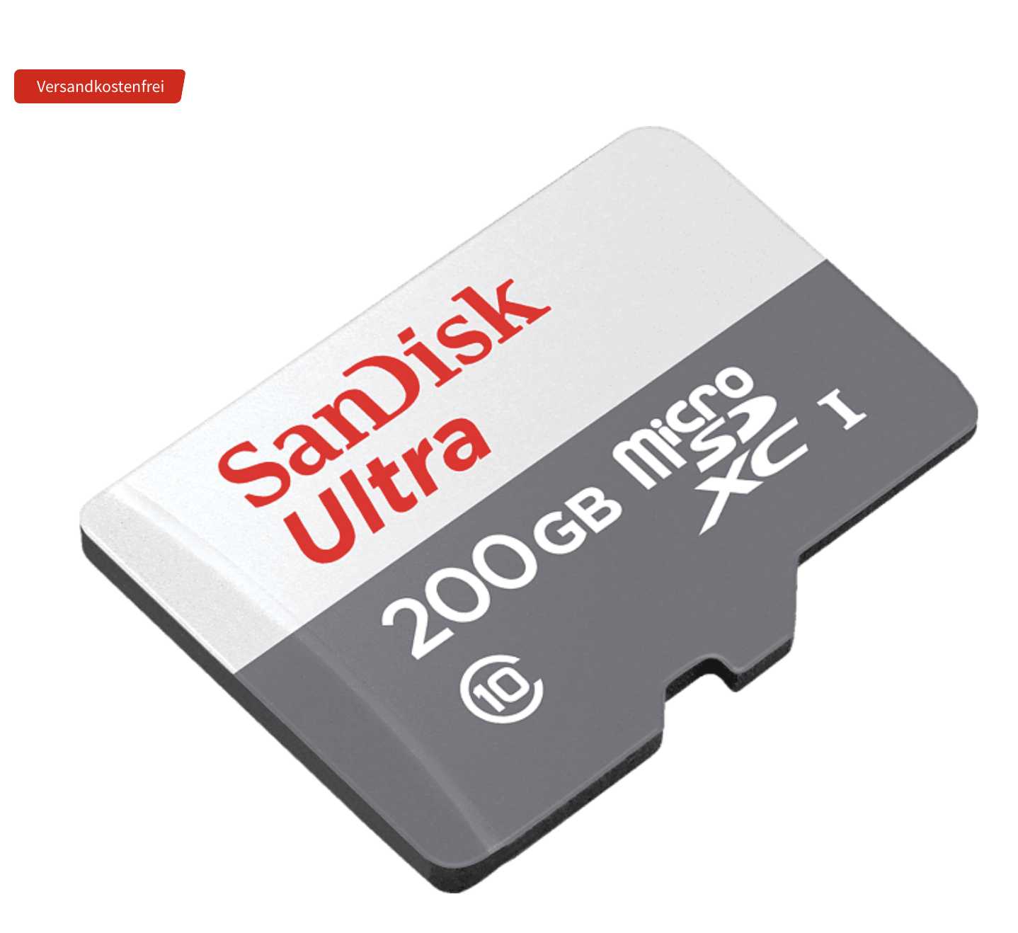 SANDISK Ultra, Micro-SDXC Speicherkarte, 200 GB für 15€ inkl. Versand.