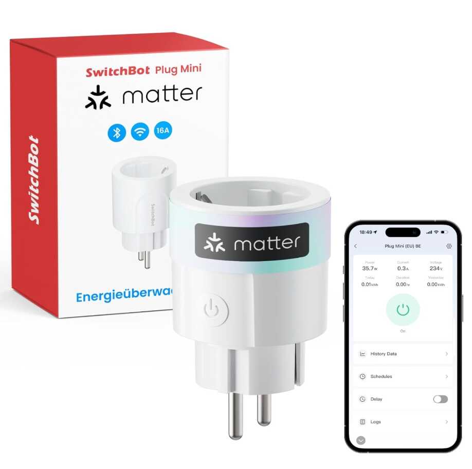 - Matter-fähige Steckdose: SwitchBot Plug Mini unterstützt Matter über WLAN und kann direkt zur Home-App oder Home Assistant hinzugefügt werden.