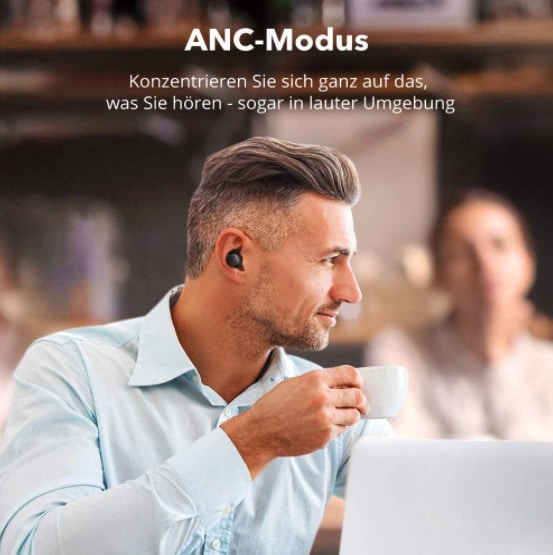 - Längeres Hörvergnügen: Das In-Ear Stereo-Headset nutzt einen energiesparenden Chipsatz für 8h Laufzeit (bei ausgeschaltetem ANC mit einer vollen Ladung), welche sich mit dem Ladecase auf 32h verlängern lässt