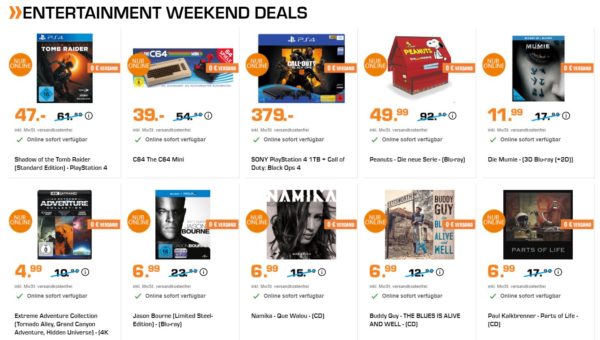 Bei Saturn gibts heute Abend wieder neue Entertainment Deals, hier:
