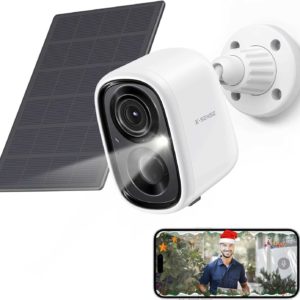 - Wetterfest gemäß IP65, einfache Installation: Hält den härtesten Witterungsbedingungen stand; lässt sich einfach mit Schrauben an der Wand befestigen; das Kabel des Solarpanels ist 2,8 m lang; die Halterungen der Kamera und des Solarpanels sind verstellbar und können so flexibel in jeder Ecke im Freien platziert werden