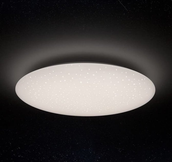 Verwandeln Sie Ihre Zimmerdecke in einen Sternenhimmel! Mithilfe von PMMA-Blasformtechnik und einem eingebauten Folierungsverfahren verleiht die Galaxy (Sternenoptik) dem Raum durch ihre sternengemusterte Oberfläche einen galaktischen Effekt.