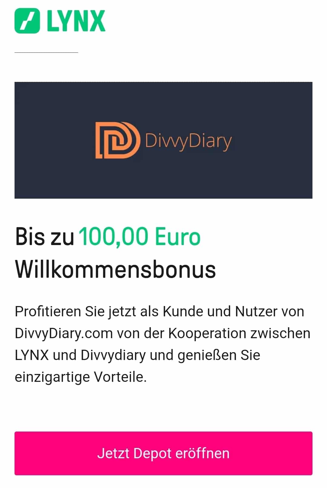 100€ Bonus als Kunde von DivvyDiary bei Lynx