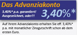 3,40% Zinsen auf Tagesgeldkonto@Advanzia