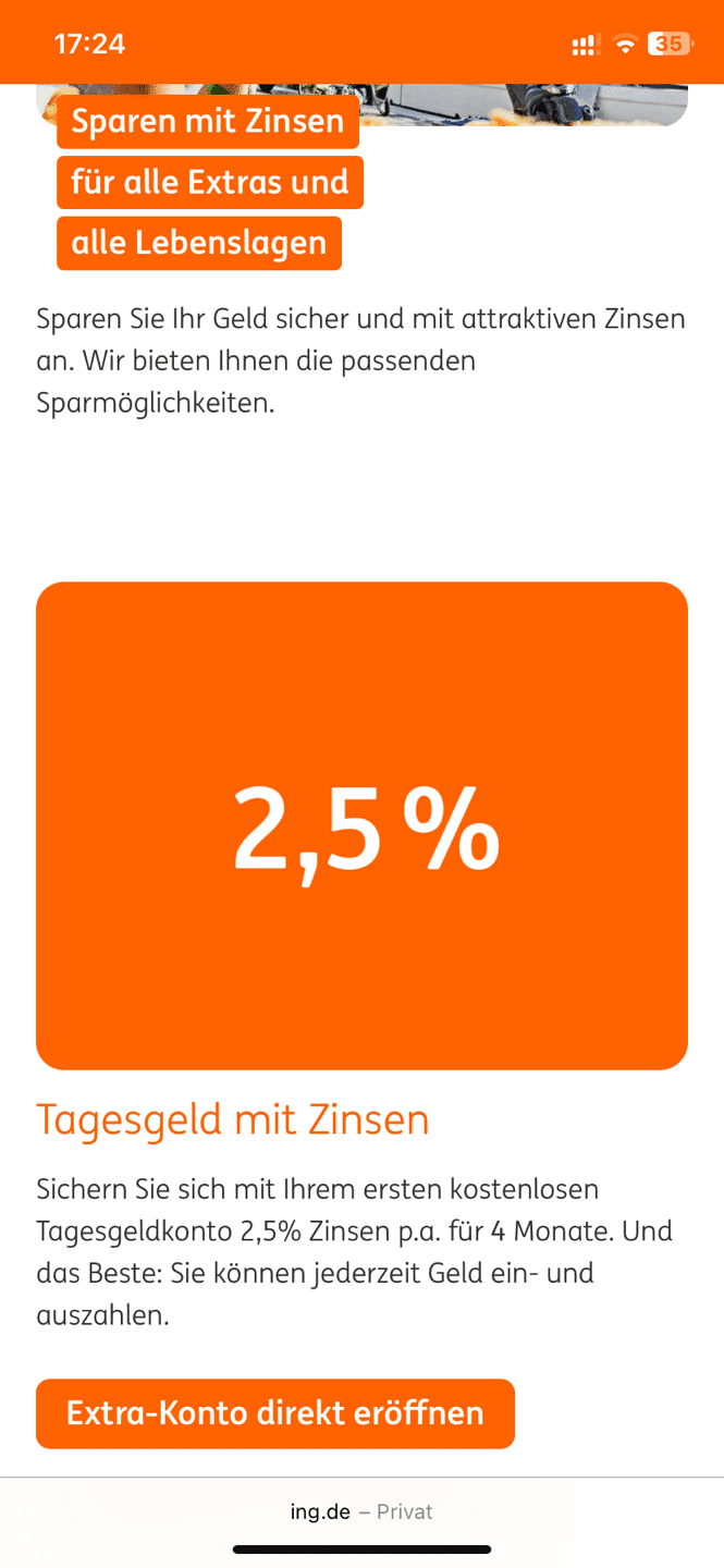 ING-Diba Extra-Konto mit 2,5% p.a.
