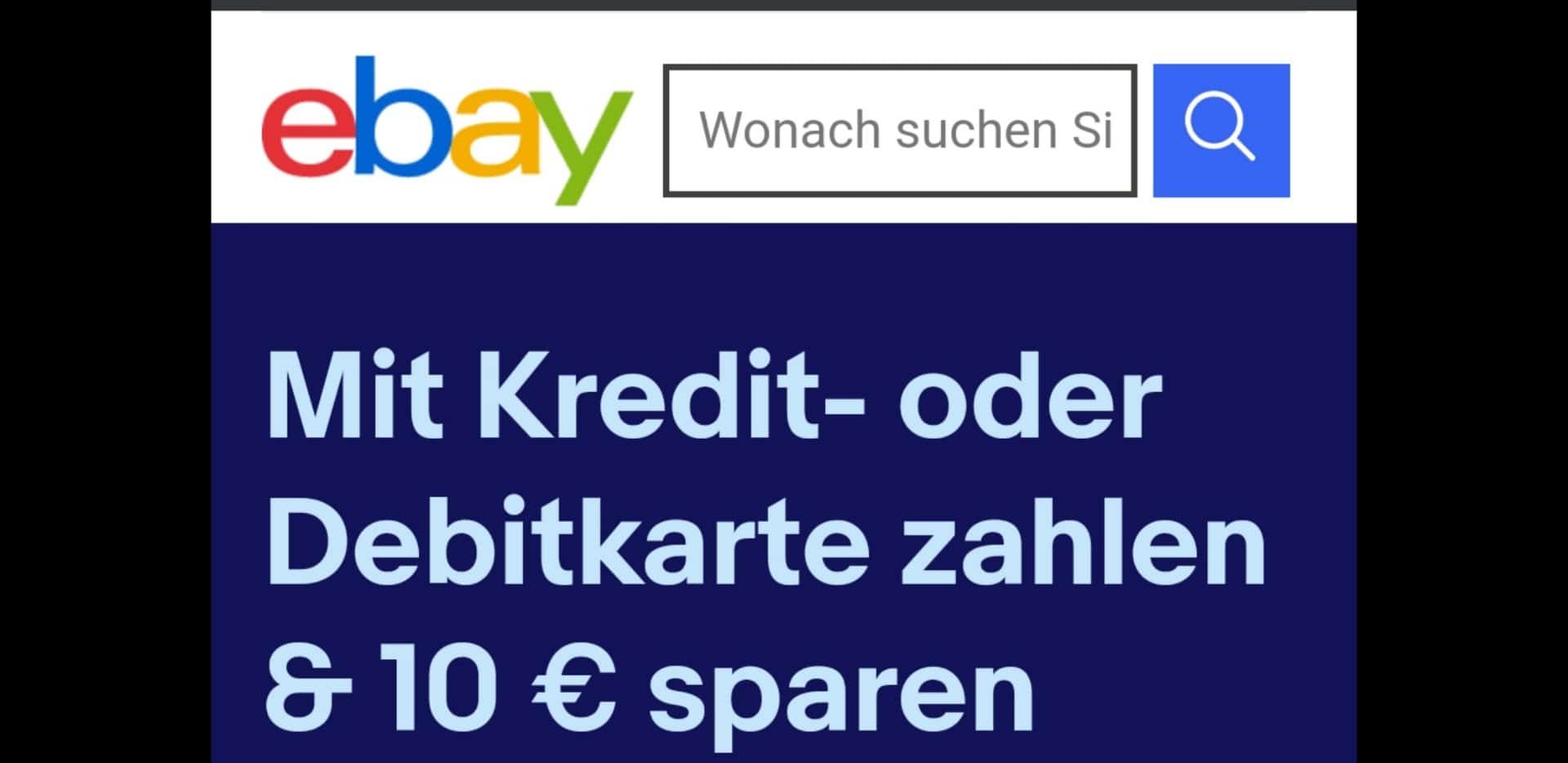 Jetzt gibt es bei Ebay einen 10€-Gutschein für die Zahlung mit Kredit- oder Debitkarte.
