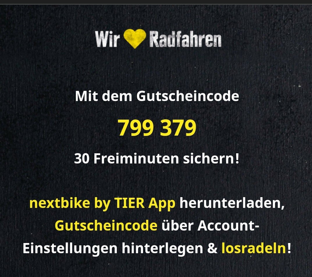 Jetzt könnt ihr euch Dank Edeka 30 Freiminuten sichern für nextbike mit der TIER App (gilt evtl. nur in Berlin).