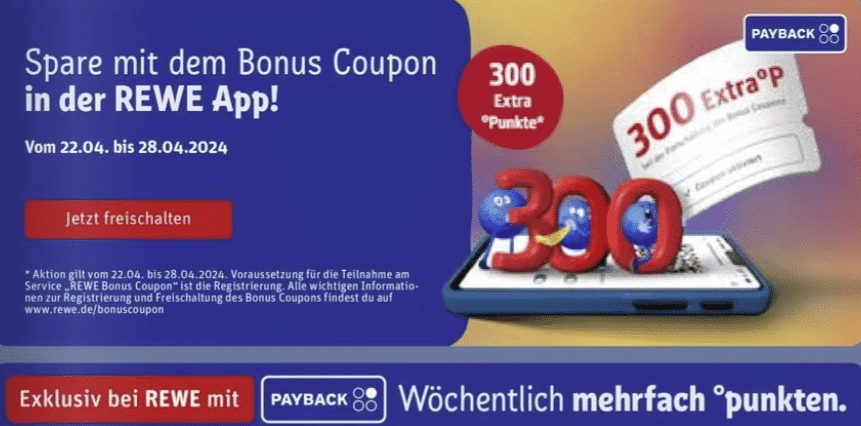 Und es gibt sie wieder die 300 Extra Payback Punkte, wenn ihr euch beim Rewe Bonus anmeldet.