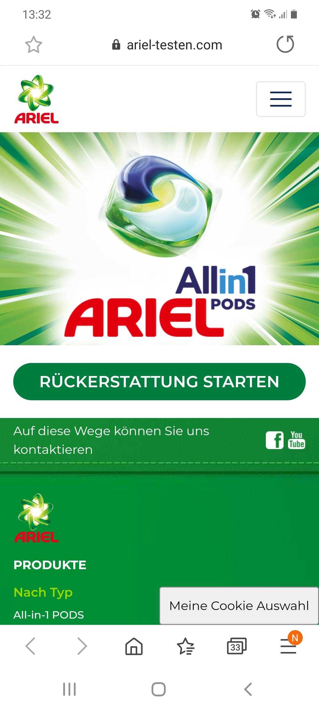 An der Ariel Gratis Testen Aktion nehmen folgende Produkte teil: