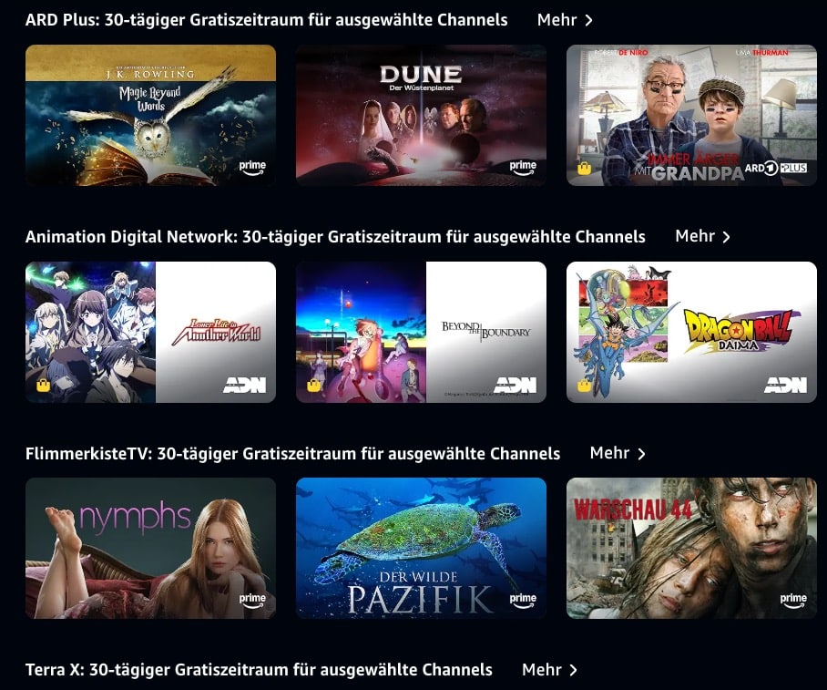[Prime Video] Viele Channels 30 Tage (statt 7 Tage) lang kostenlos