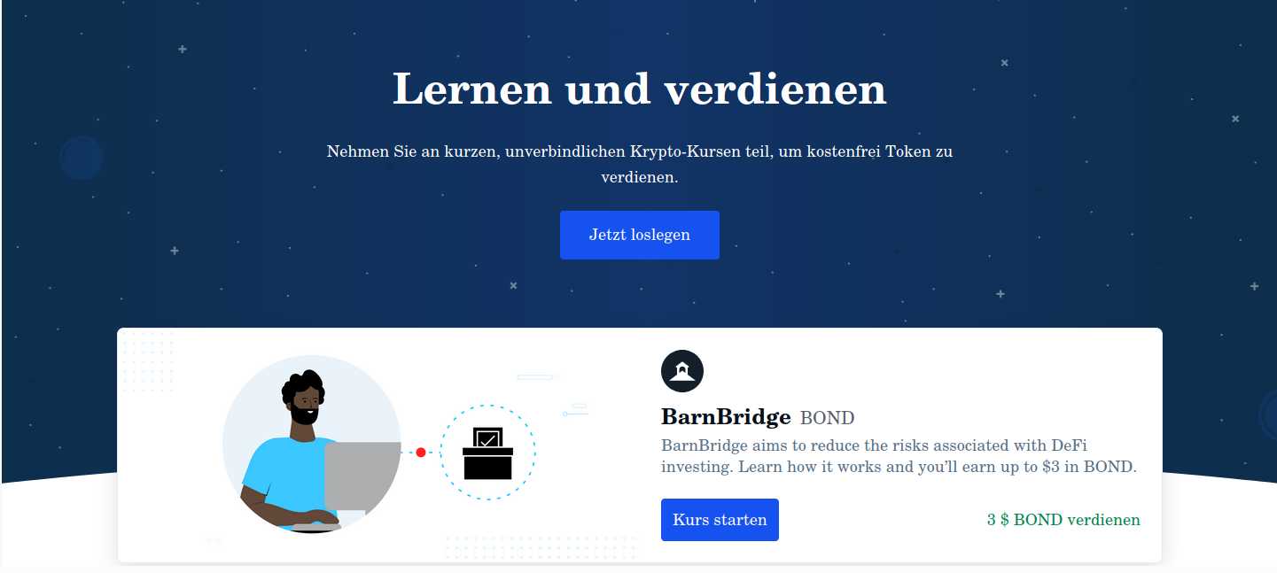 Bei Coinbase kann man wieder 3 Dollar in Form von Krypto abgreifen, diesmal geht es um die Währung BarnBridge (BOND).