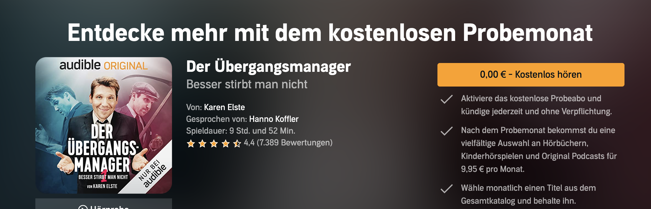 Dafür gibt es jetzt bei Audible „Der Übergangsmanager“ als Hörbuch gratis.