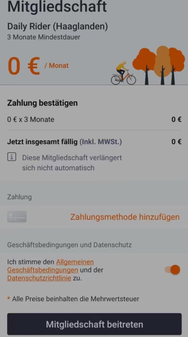 - Abo auswählen „DailyRider“, endet nach 3 Monaten
