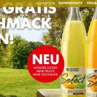Franken Brunnen hat gerade eine tolle Aktion laufen, hier kann man bis zu drei Flaschen der neuen Select-Produkte testen und das Geld dafür zurück erhalten.