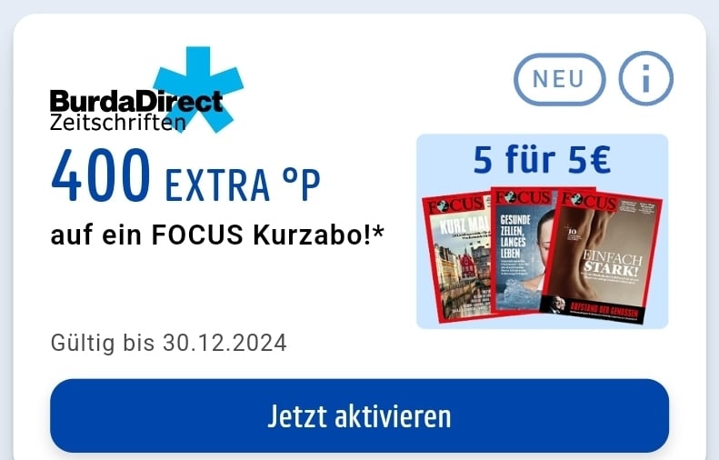 • Bestelle die Zeitschrift über Payback, nach Aktivierung des gleichnamigen Coupon.