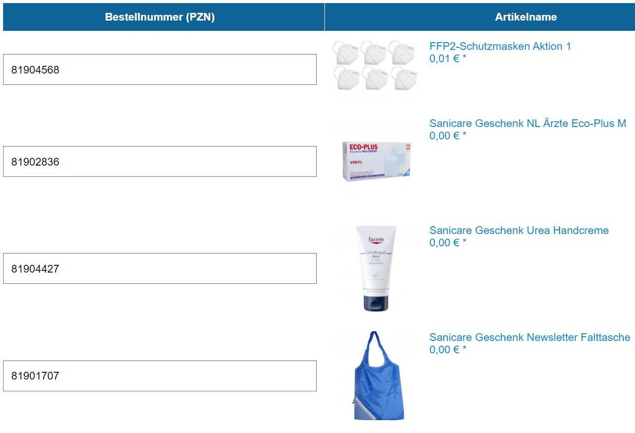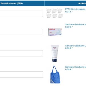 - 81904568 – FFP2-Schutzmasken Aktion 1 (Info: https://www.sanicare.de/p/ffp2-schutzmasken-aktion-1-1-81904568)