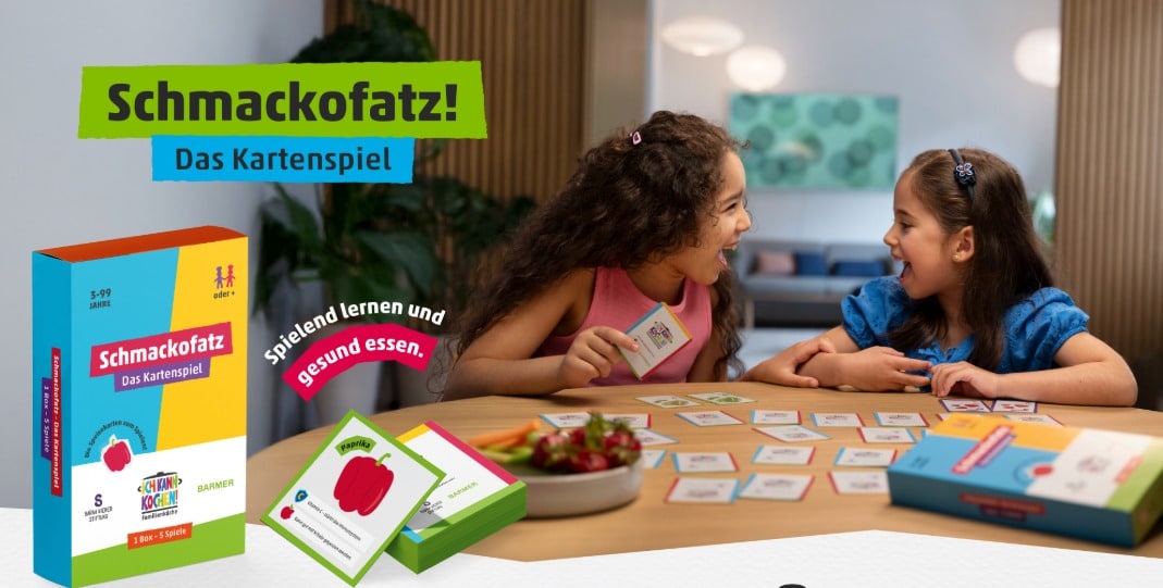 Für Kinder ab 3 gibt es von der Barmer das Kartenspiel Schmackofatz, rund um gesunde Ernährung, geschenkt.