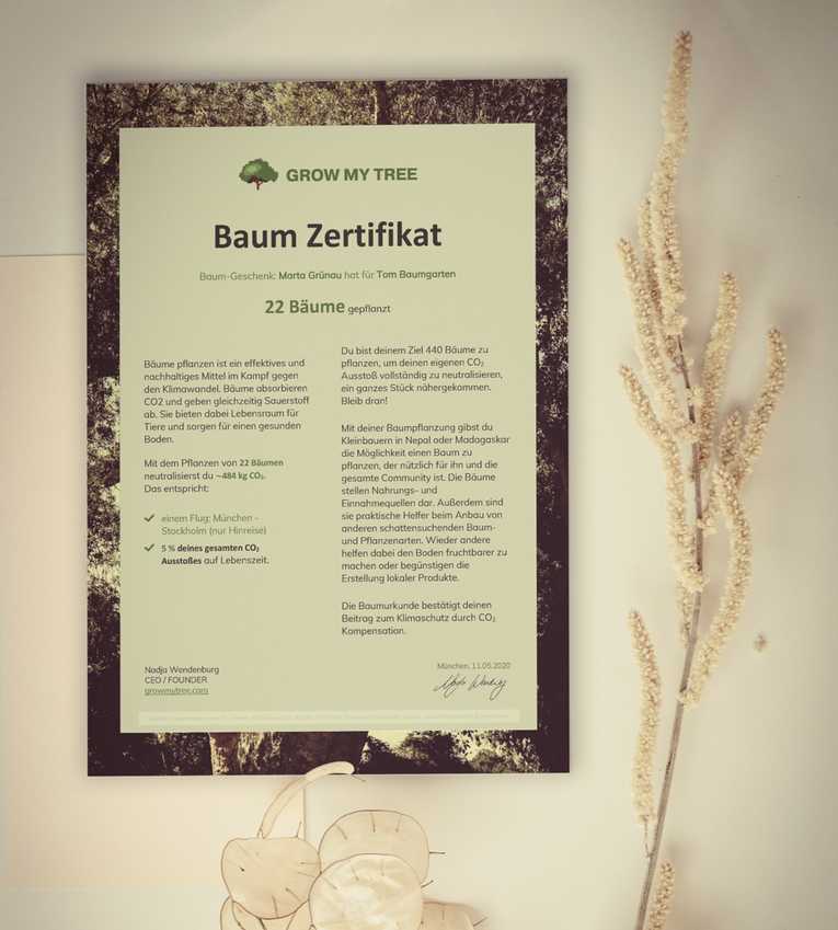 Mit dem Pflanzen eines Baumes neutralisierst du 22 kg CO2 pro Jahr. Das entspricht ca.: