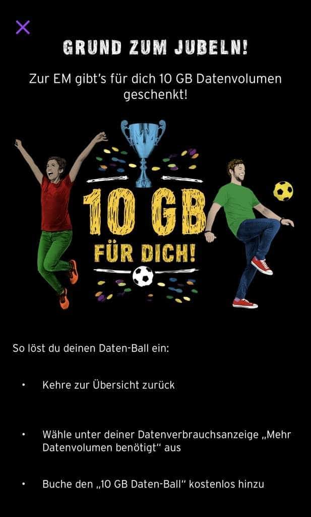 - Buchen den „10 GB Daten-Ball“ kostenlos hinzu.