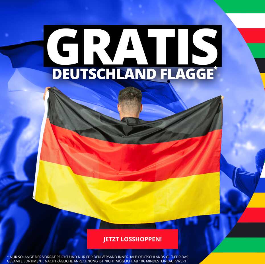 Holt euch jetzt eine GRATIS Deutschland Flagge bei jedem Einkauf ab 10€ Mindestbestellwert bei SportSpar! Perfekt, um beim Halbfinale (yes, wir schaffen das!) Flagge zu zeigen.