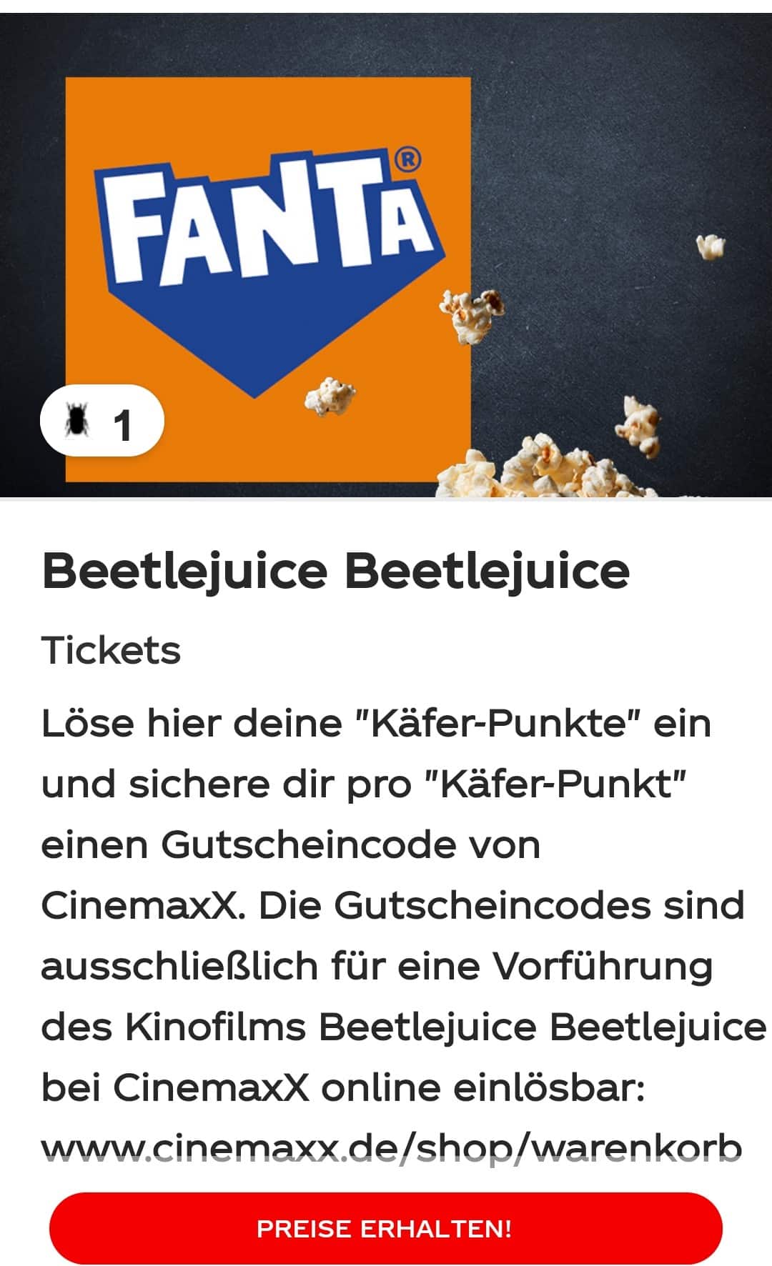 Zur Zeit gibt es inbder Coca Cola App zwei gratis Kinotickets für den Film BEETLEJUICE nur Cinemaxx Kinos.
