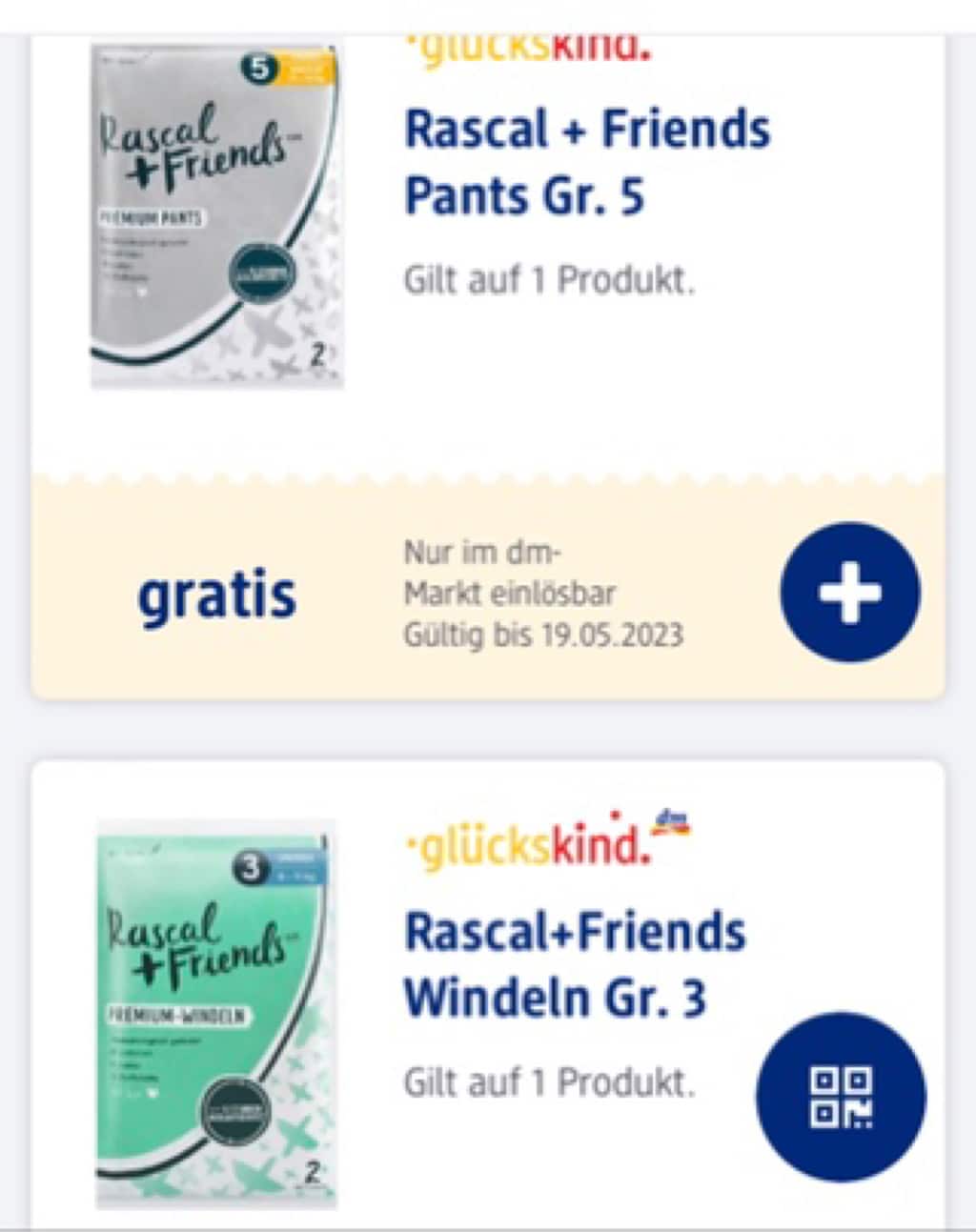 DM Kunden im Glückskind Programm haben in der DM App 2 Gutscheine für