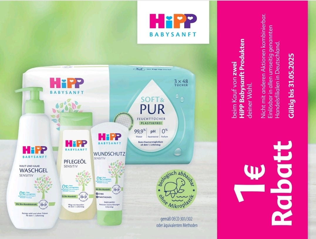 1€ Rabatt beim Kauf von zwei HiPP Babysanft