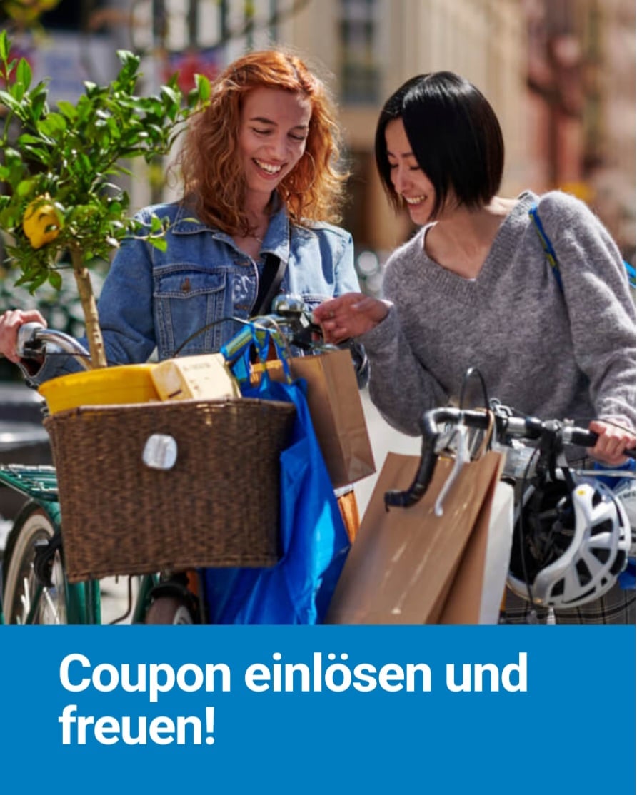 Bei IKEA scannst du an der Kasse vor dem Bezahlen deine IKEA Family Karte und deinen QR-Code. Bei deiner Bestellung auf IKEA.de und in der IKEA App loggst du dich als IKEA Family Mitglied ein und gibst deinen Coupon-Code im Warenkorb an. Der Mindesteinkaufswert beträgt 5€. Eine vorherige Abfrage über die Höhe des Couponwertes an der Kasse ist nicht möglich. Er gilt nur im Original und ist nicht mit anderen Coupons und Aktionen kombinierbar. Der Coupon kann nicht für Lieferungen aus dem Zentrallager, für Serviceleistungen und beim Kauf von IKEA Geschenkkarten genutzt werden. Keine Barauszahlung möglich.