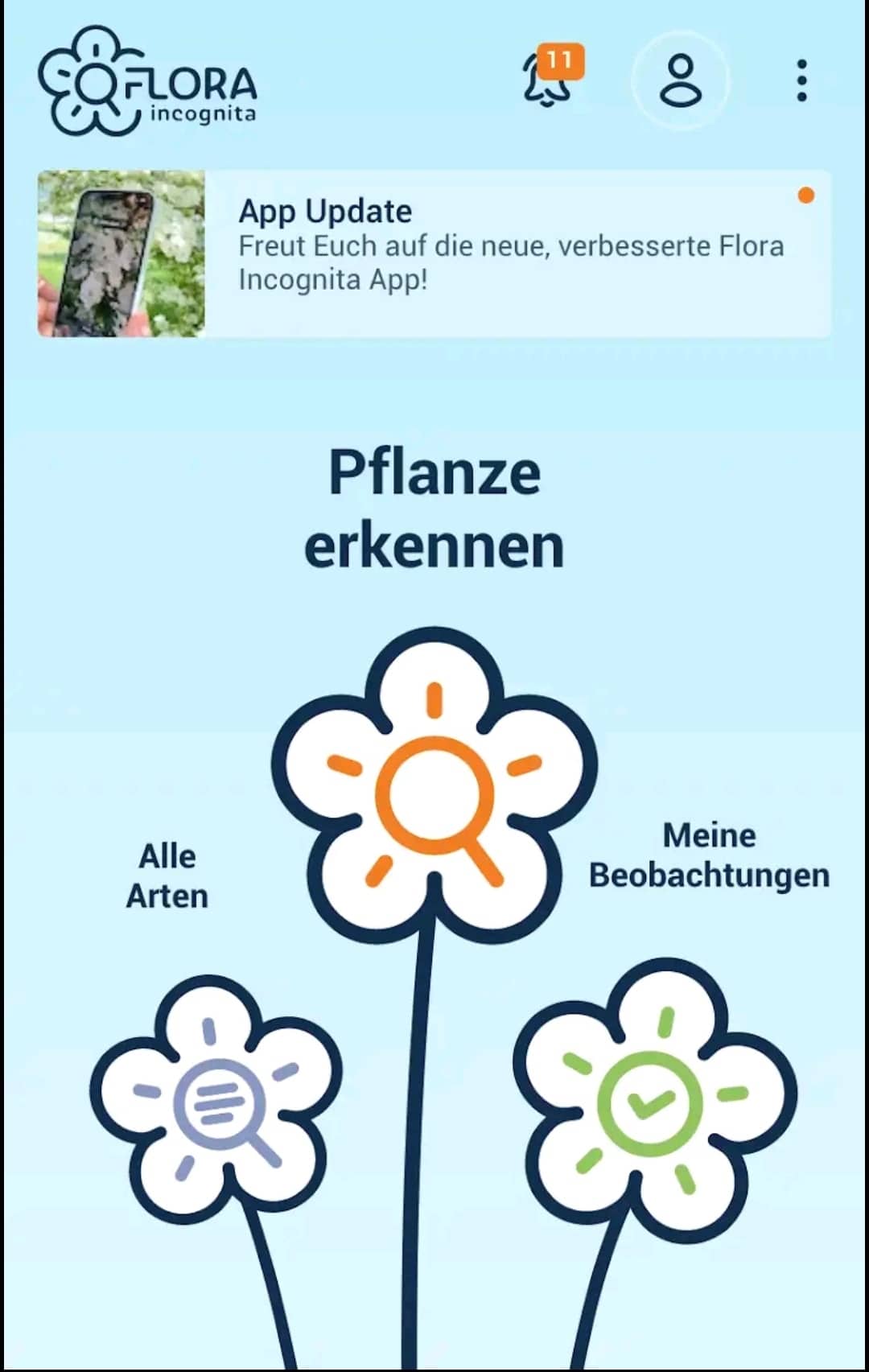 Laden Sie die kostenlose App „Flora Incognita“ auf Ihr Mobilgerät.