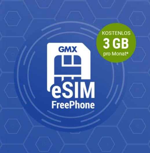 Kostenlos: GMX FreePhone e-Sim Tarif mit 3GB Daten pro Monat und Allnet Flat