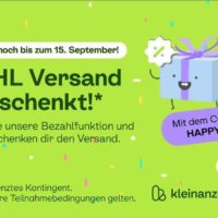 Vom 07. – 15. September gibt es bei den ersten 35.000 abgeschlossenen Käufen, bei denen die Kleinanzeigen Bezahlfunktion genutzt und der Aktionscode „HAPPY“ eingegeben wird, kostenlosen Versand per DHL. Die Versandkosten von DHL bezahlt in diesem Fall Kleinanzeigen. Gilt für alle auf Kleinanzeigen angebotenen Paketgrößen von DHL. Angebot gilt nur für Kategorien, in denen die Bezahlfunktion angeboten wird. Dreimalig einlösbar, nicht übertragbar, keine Barauszahlung, keine Gutschrift.
