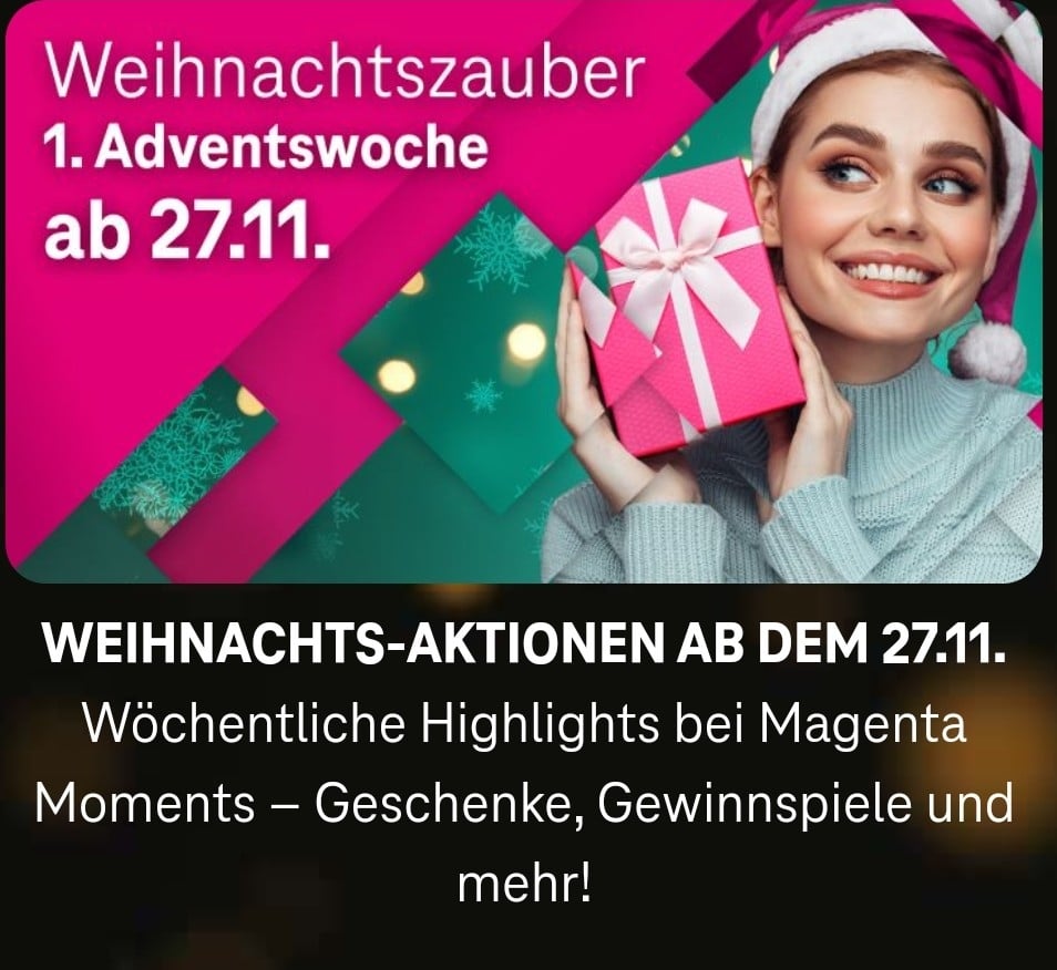 Telekom-Kunden können sich jetzt schon auf den kostenlosen Adventskalender bei Magenta Moments freuen.
