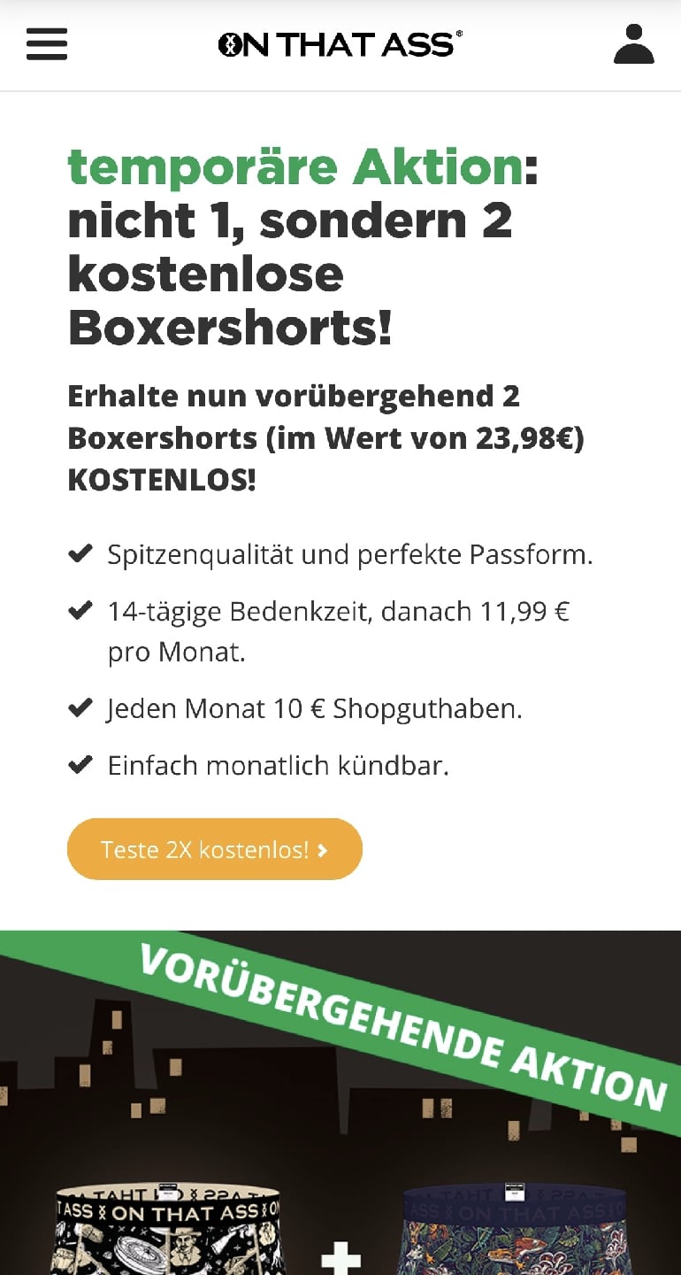 Erhalte nun vorübergehend 2 Boxershorts (im Wert von 23,98€) KOSTENLOS!