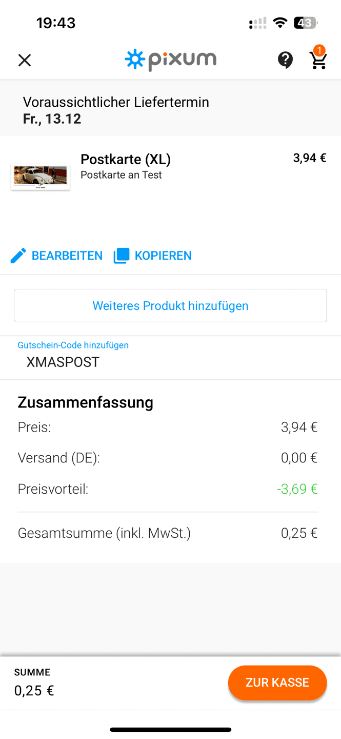 PixumAPP: Weltweit kostenlose Foto Postkarte verschicken