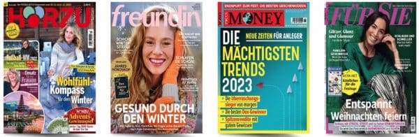 Da könnt ihr euch jetzt u. a. die folgenden Zeitschriften 3 Monate lang kostenlos bestellen bzw. lesen: