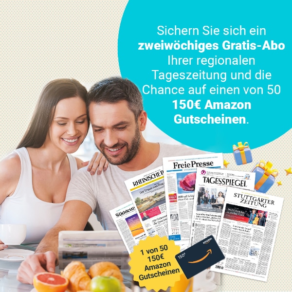 Man hat einerseits die Chance, einen von 50 Amazon.de-Gutscheinen im Wert von je 150€ zu gewinnen, andererseits darf man sich garantiert über ein 2-wöchiges gratis Abo einer regionalen Tageszeitung aus der Nähe freuen.